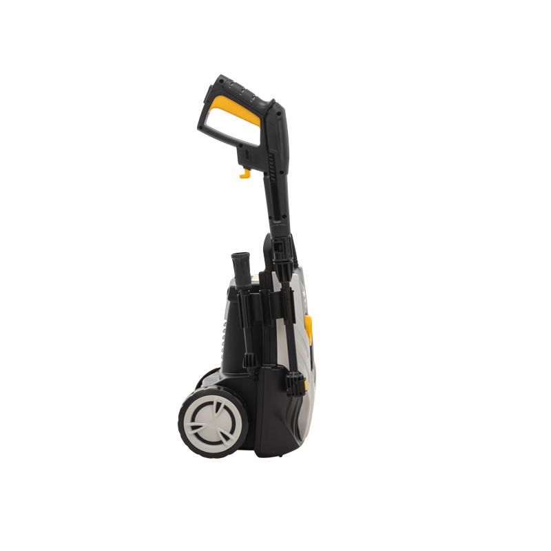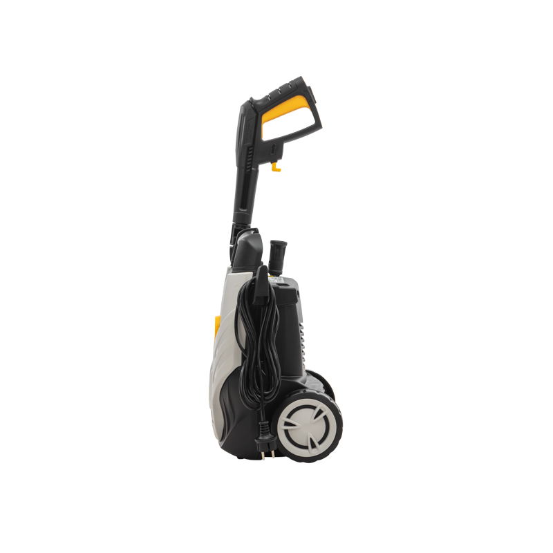 - Мойка отличается мобильностью благодаря кабелю длиной 5 м, удобной рукоятке и колесам. Шланг длиной 5 м обеспечивает удобство использования.