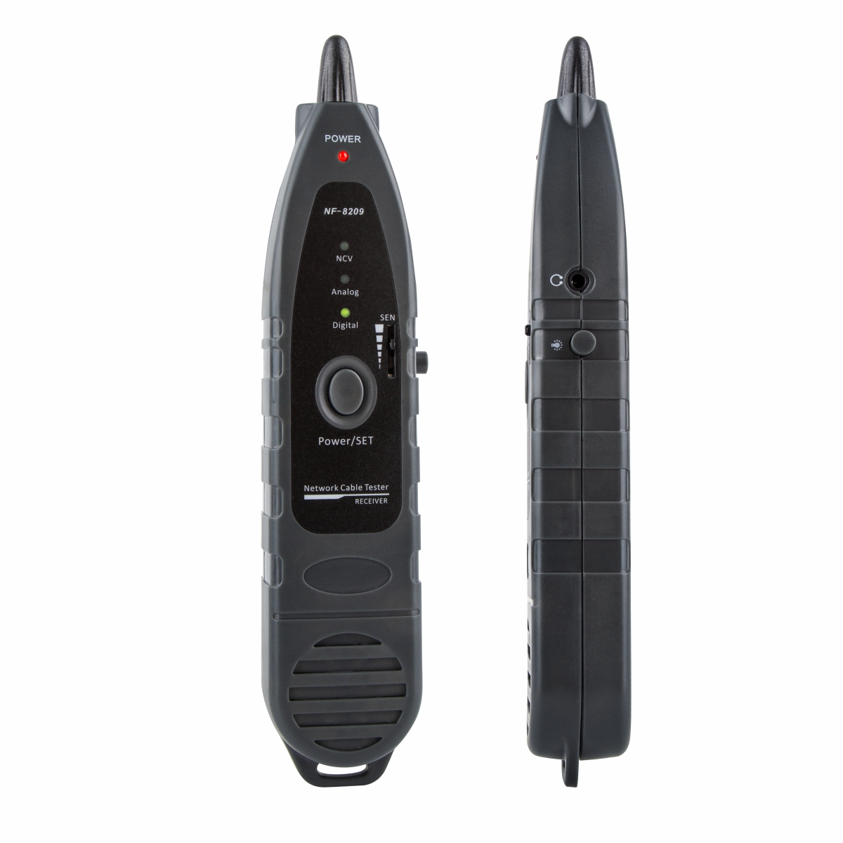 Сетевой кабельный тестер NF-8209 – это устройство, соединяющее в себе аналоговый, цифровой и PoE (Power over Ethernet) режимы работы. Состоит из передатчика, приёмника и дистанционного датчика. Встроенный фонарик облегчит работу в условиях недостаточного освещения. На ярком ЖК-экране отображаются измеряемые параметры, схемы и режимы работы.